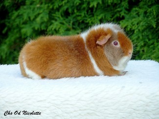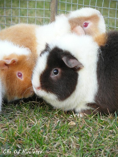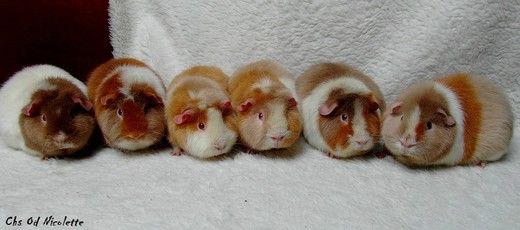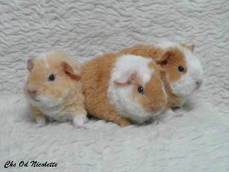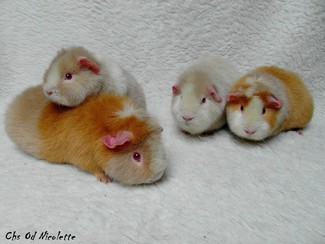 Roční samice Eliška (dole vlevo) a tříletá samice Zaira (dole vpravo). Rozdíl v srsti je již dobře viditelný z fotky. Eliška má kožich po stranách lehlý oproti Zaiře. Avšak u Us Teddíků platí, že morče musí být osaháno na živo a osobně prohlédnuto. Tak se nejlépe určí kvalita srsti a správné vybarvení morčete.