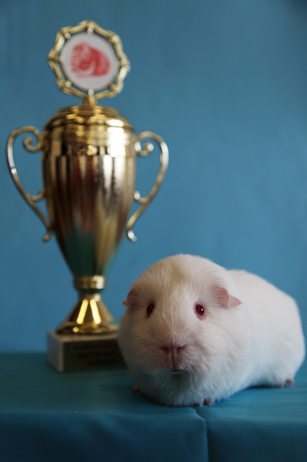 Nejlepší morče výstavy (Best in Show) – SnowMan Z Elfího údolí, 97,5 b. (maj. Kateřina Nováková)