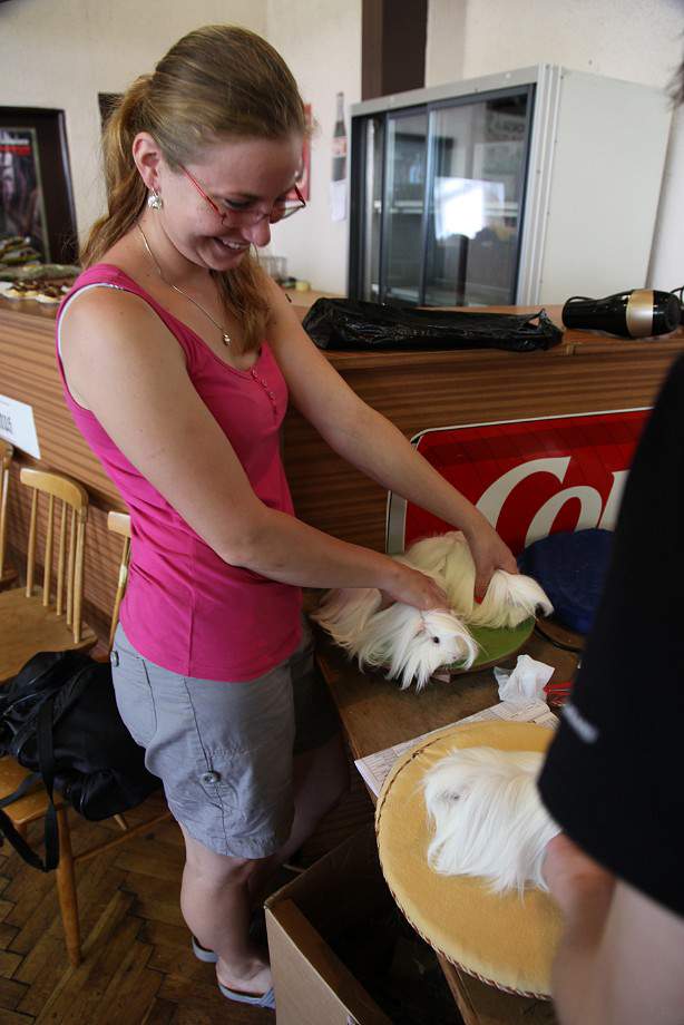 Výstava začínala od 7 hodin a končila okolo 18 hodin. Posuzování morčat začalo v 9 hodin a ujaly se jej posuzovatelky Andrea Kroftová a Denisa Vítková. Fotografování celé akce mi zajistila Jana Krausová, která vše pohotově dokumentovala.